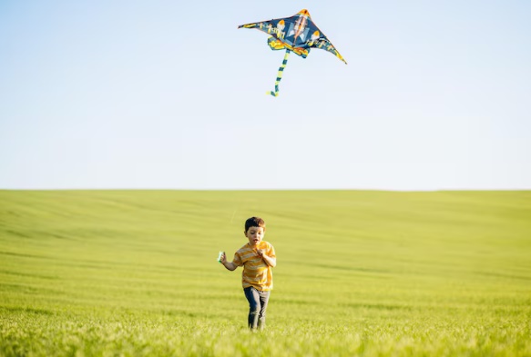 Anak anak sedang bermain layangan